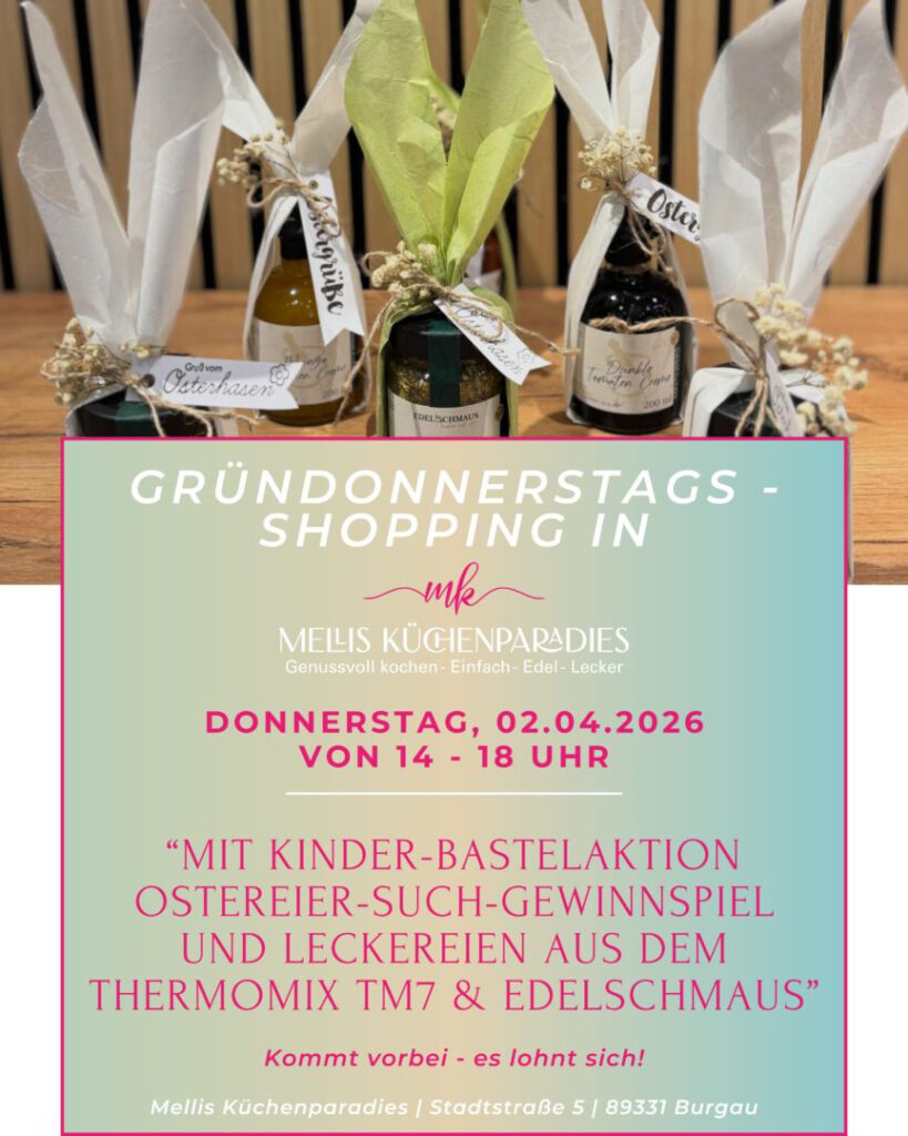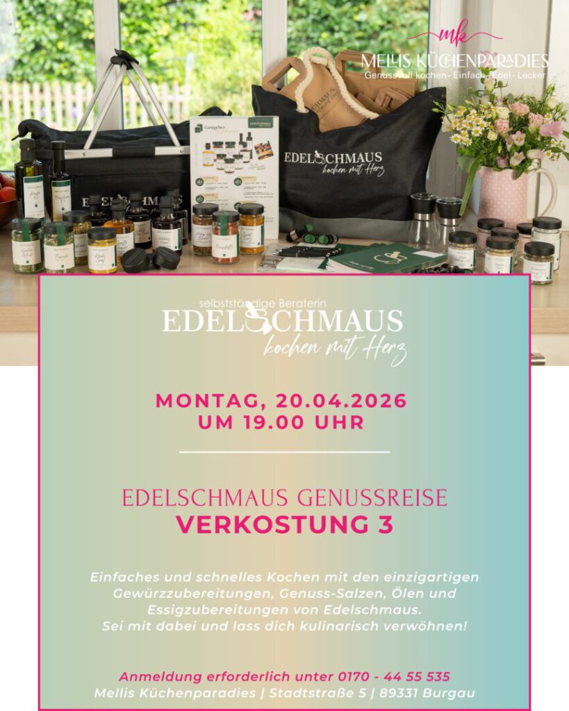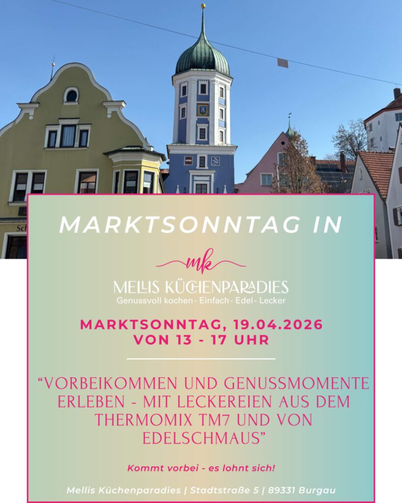 Seit 2012 koche & backe ich bereits mit meinem Thermomix® und den Produkten von Pampered Chef® und im Februar 2025 kamen die leckeren Gewürze, Öle und Essigzubereitungen von Edelschmaus mit dazu.